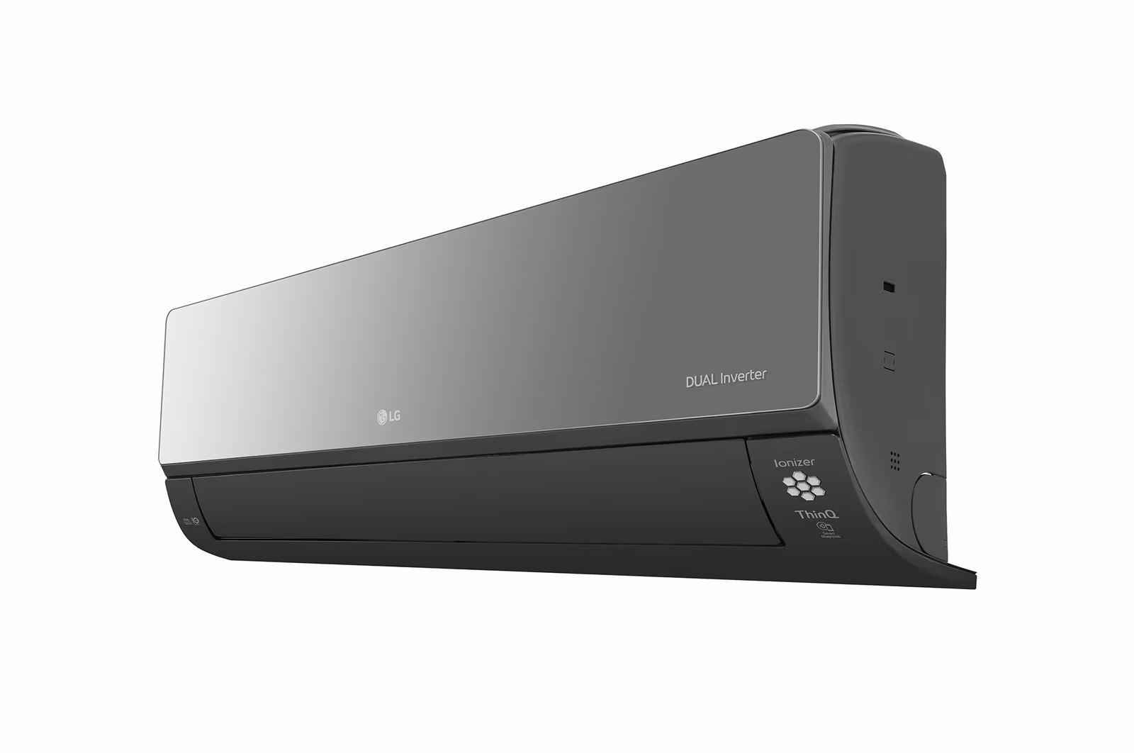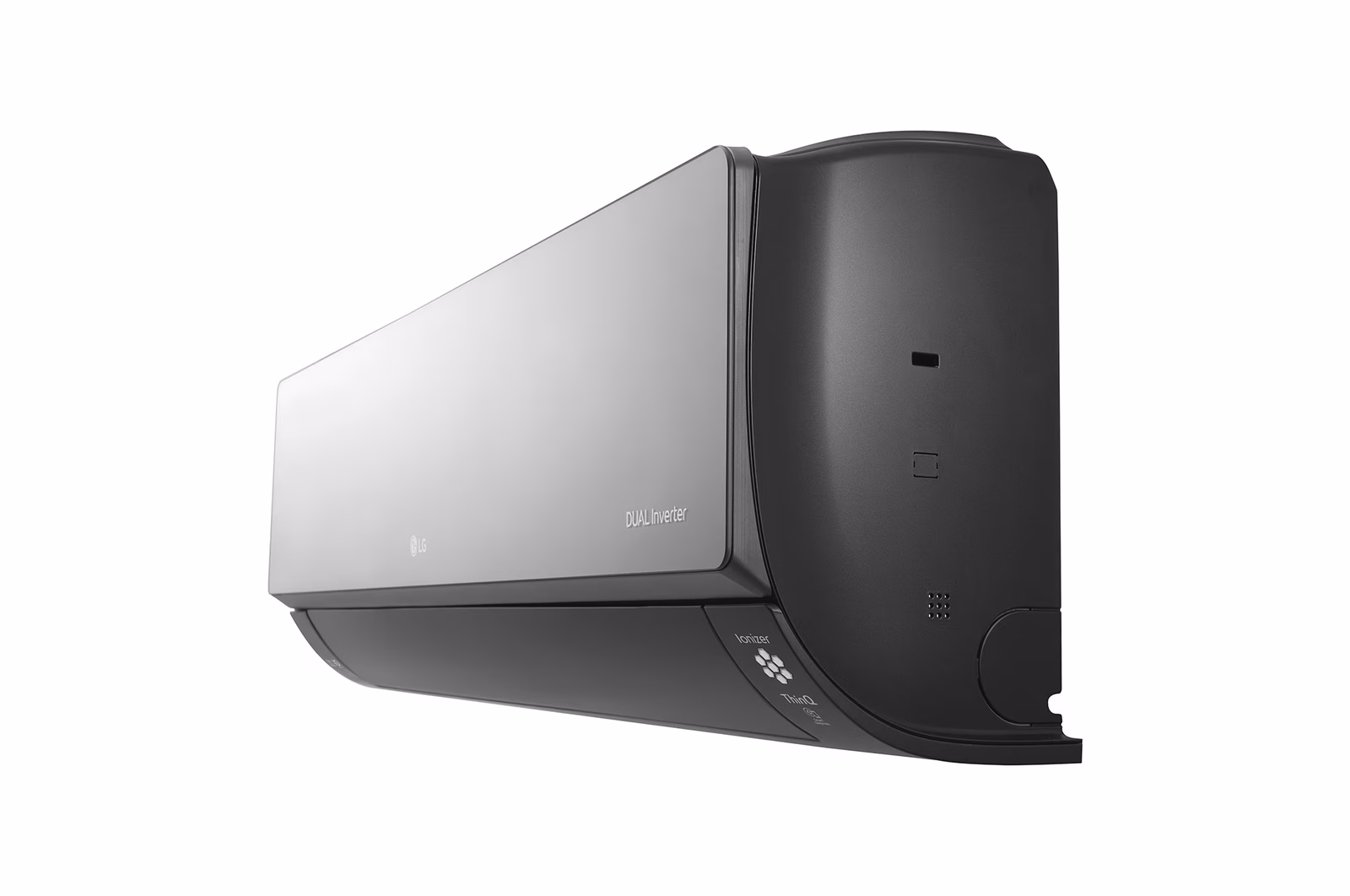 The 1.5HP LG ARTCOOL pairs a striking mirrored-glass front panel with the DUAL Inverter Compressor. It cools quickly, runs quietly and adds Plasmaster ionisation plus LG ThinQ smart control — designed to blend into your room rather than dominate it.LG ARTCOOL 1.5HP memadankan panel hadapan kaca cermin yang menarik dengan DUAL Inverter Compressor. Ia menyejuk dengan pantas, beroperasi secara senyap dan dilengkapi pengionan Plasmaster serta kawalan pintar LG ThinQ — direka untuk menyatu dengan bilik anda dan bukannya mendominasinya.