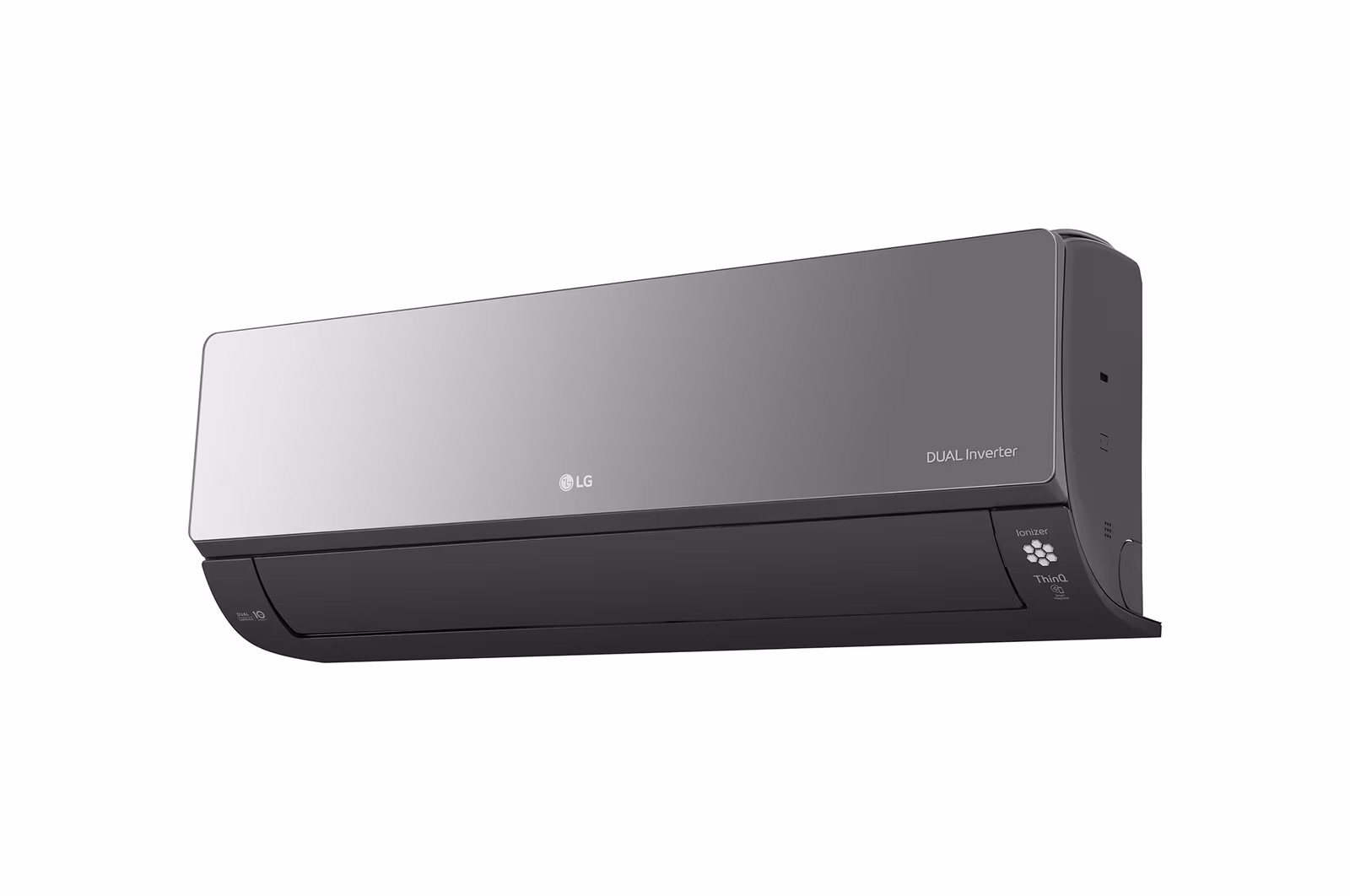 The 2.5HP LG ARTCOOL brings LG's mirrored-glass aesthetic to larger rooms, paired with a powerful DUAL Inverter Compressor and Plasmaster ionisation. Offered on a 5-year LG Subscribe plan with annual servicing included.LG ARTCOOL 2.5HP membawa estetika kaca cermin LG ke bilik yang lebih besar, dipasangkan dengan DUAL Inverter Compressor yang berkuasa dan pengionan Plasmaster. Ditawarkan di bawah pelan LG Subscribe 5 tahun dengan servis tahunan termasuk.