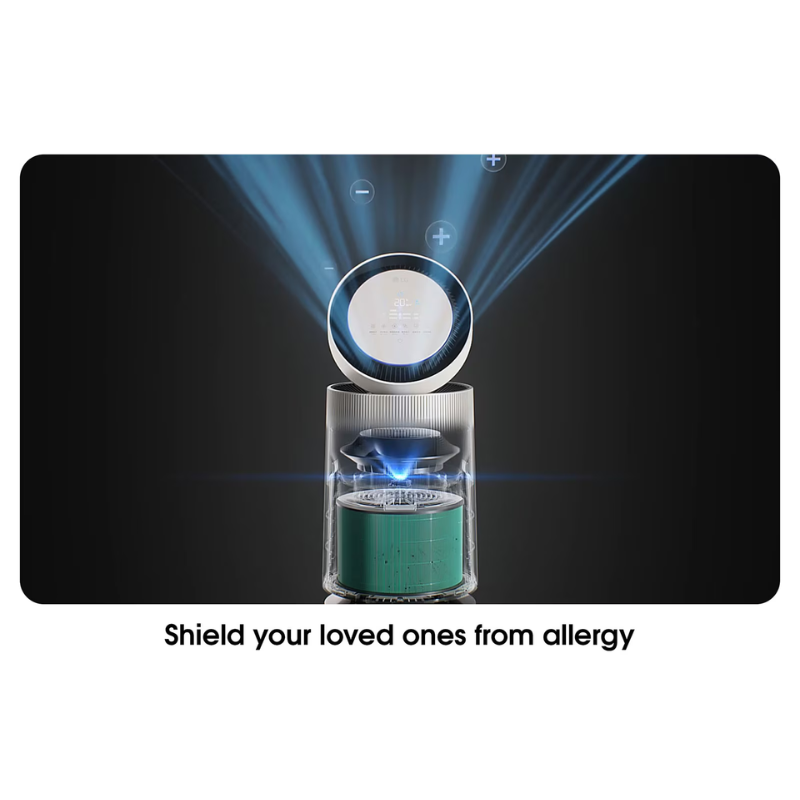 The Alpha Pet Double stacks two 360° purification modules into a single tower, delivering 810 CMH CADR for homes up to 104 m². It combines Pet Mode, Baby Care and UVnano sterilisation to keep large living areas fresh even in heavy-use pet households.Alpha Pet Double menyusun dua modul penulenan 360° ke dalam satu menara, menyampaikan CADR 810 CMH untuk rumah sehingga 104 m². Ia menggabungkan Pet Mode, Baby Care dan pensterilan UVnano untuk memastikan ruang tamu yang besar sentiasa segar walaupun dalam rumah berhaiwan peliharaan yang kerap digunakan.