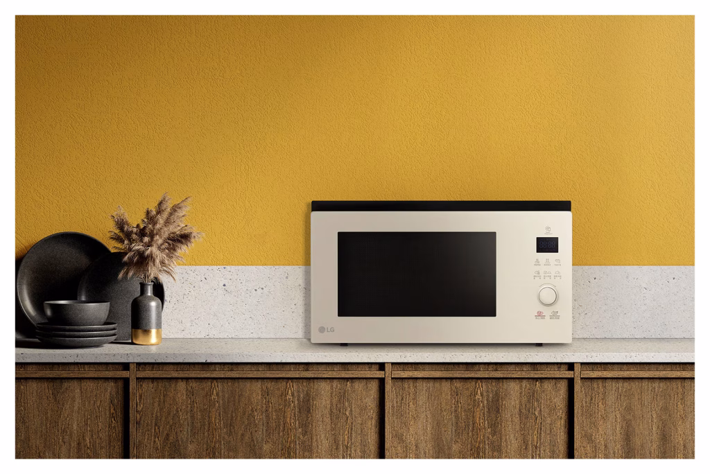 39 L Objet Collection microwave in Mist Beige — Smart Inverter technology, EasyClean interior and touch controls.Ketuhar gelombang mikro Objet Collection 39 L dalam Mist Beige — teknologi Smart Inverter, dalaman EasyClean dan kawalan sentuh.