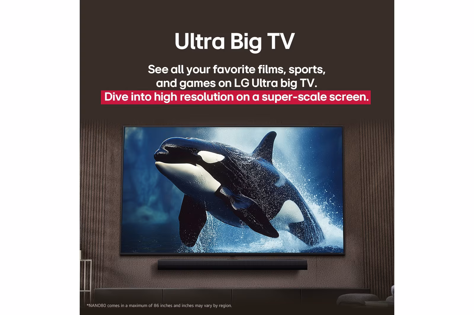 75-inch NanoCell 4K with α7 AI Processor Gen8, HDR10 and webOS 25.NanoCell 4K 75-inci dengan α7 AI Processor Gen8, HDR10 dan webOS 25.