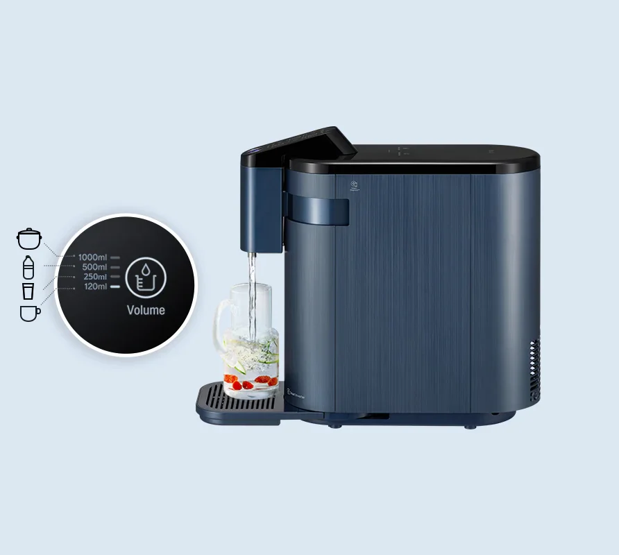 Preset volumes at 120 / 250 / 500 / 1000 ml and hot presets at 40, 75 and 85 °C cover infant formula, tea and coffee use cases.Preset isipadu pada 120 / 250 / 500 / 1000 ml dan preset panas pada 40, 75 dan 85 °C meliputi kegunaan susu bayi, teh dan kopi.