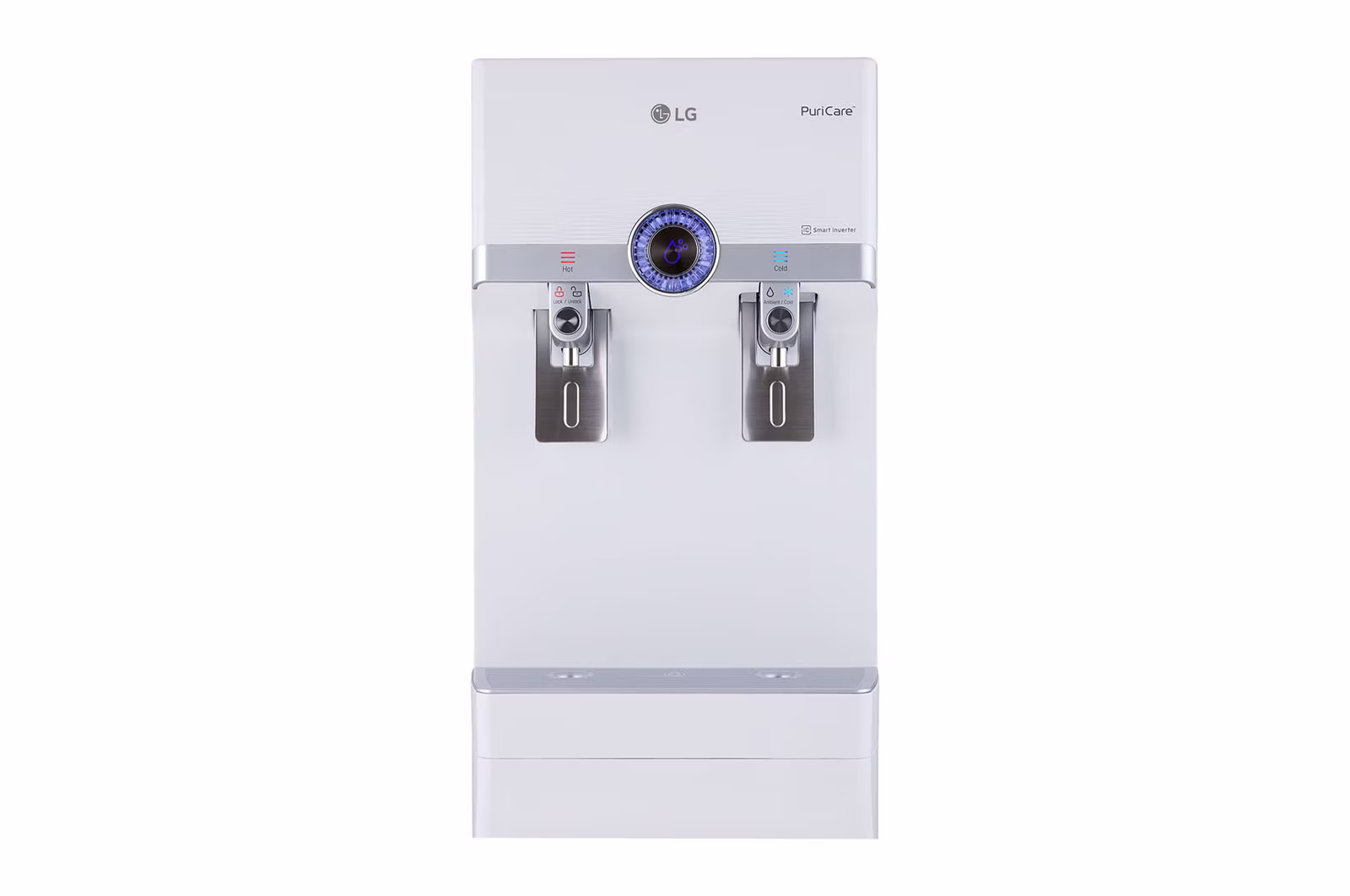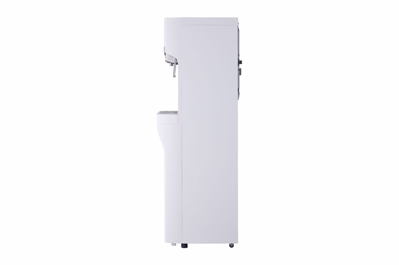 LG's first Inverter floor-standing purifier — 7.5 L cold tank, 270 mm clearance and 10-year compressor warranty.Penulen berdiri lantai Inverter pertama LG — tangki sejuk 7.5 L, jarak 270 mm dan waranti kompresor 10 tahun.